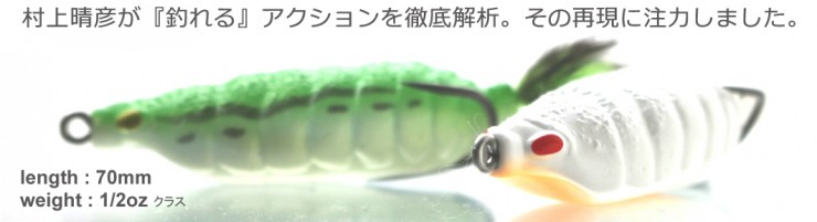 ボディ素材にはソフトマテリアルのエラストマーを採用。フックがボディに当たる音さえも抑え、サイレントベイトとしてプレッシャーの掛かった水域でも威力を発揮。硬質樹脂ボディのルアーでは発生させることが出来ない艶めかしい水中波動で魚を誘います。