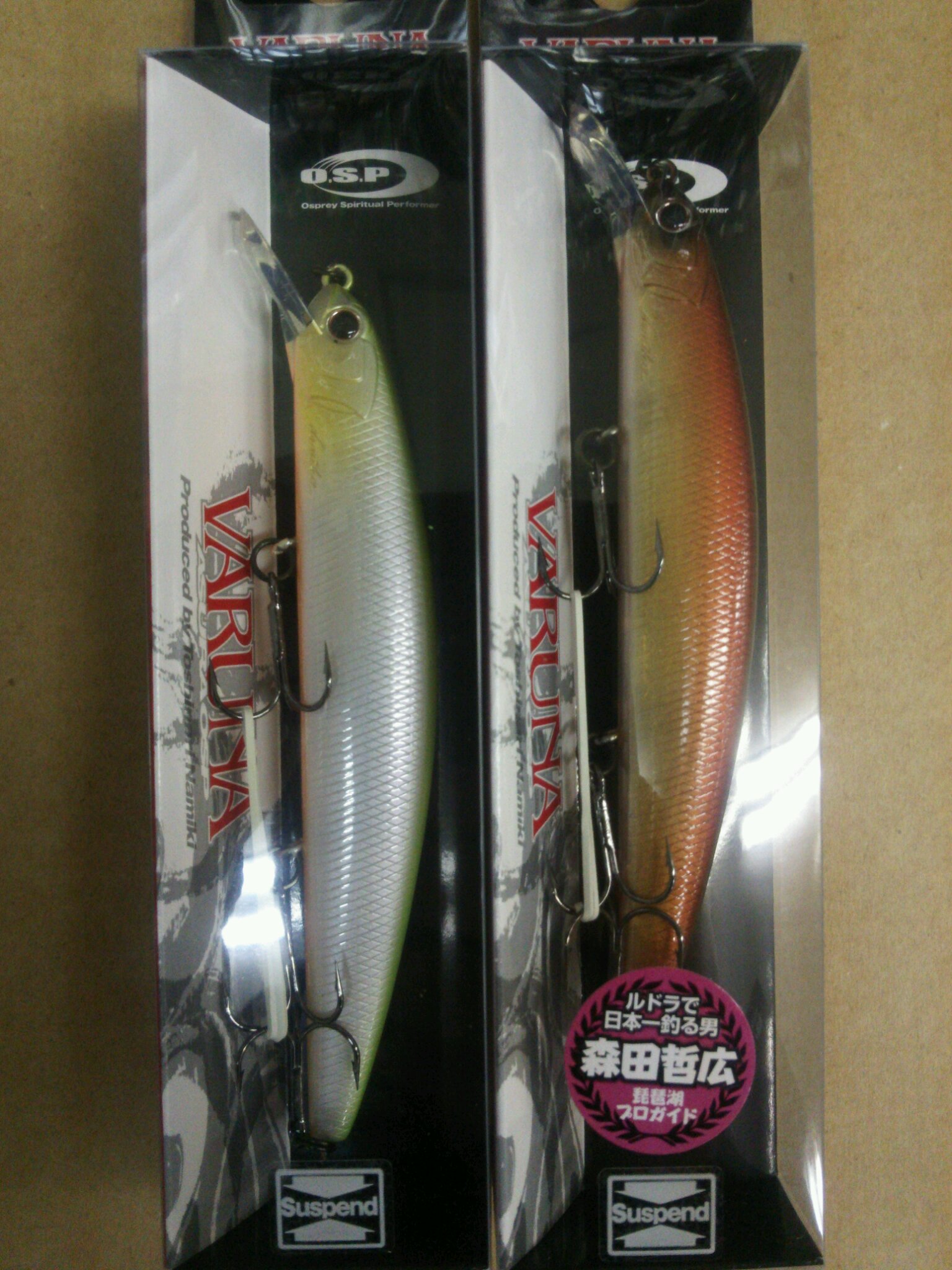 阿修羅誕生から14年、RUDRAも10年目を迎える2015年、この両ジャークベイトを長年使い込むことであらためて中間サイズである11cmの必要性を感じた。フィールドのタイプやシチュエーションによってルアーセレクトは年々シビアさを増し、これを誤ると良い釣果は得られない。タフな状況で有効な9cmクラスでも、時としてアピール不足な場合がある。ビッグバスに有効な13cmクラスはプレッシャーによってバイトしない時がある。この2サイズだけで全釣行をベストフィットさせることは難しい。そこでその穴を埋めるべく開発をスタートした。ジャークベイトの良さを発揮できるスリムなボディ形状で11㎝クラスNo.1を目指すためには全ての性能をブラッシュアップさせる必要があった。伝統のフルフラットボディによるフラッシングと強い水押しは確実にバイトを倍増。小口径トリプルタングステン重心移動はウエイトを尻尾付近にまで到達させ、安定した飛行姿勢によるアキュラシーとロングキャスト性能を実現。これは独特のサウンドやウエイトの低重心化にも貢献し、軽量化と強度を両立したハニカムスーパーHPボディ(PAT.)との融合でハイレスポンスで泳ぎ出しの良いストップ&ゴー、さらにはストレートリトリーブでのバイト誘発力も最上点に達した。最大深度はタダ巻で水面から2.1m、ただ巻からの連続ジャークでは2.8mまで潜るという特徴的な性能を見せる。また、ありがちな早巻きでのバタつきも抑えオールスピードで食わせられることは強力な武器となる。トゥイッチやジャークでは軽い力で簡単にキレの良い首振りができることでプレッシャーをかけず、移動距離を抑え、低水温期のスローなバスでも広範囲から引き付ける時間を稼いでくれる。VARUNAは全性能を最高次元に到達させた最強の11㎝ミノーとなる。